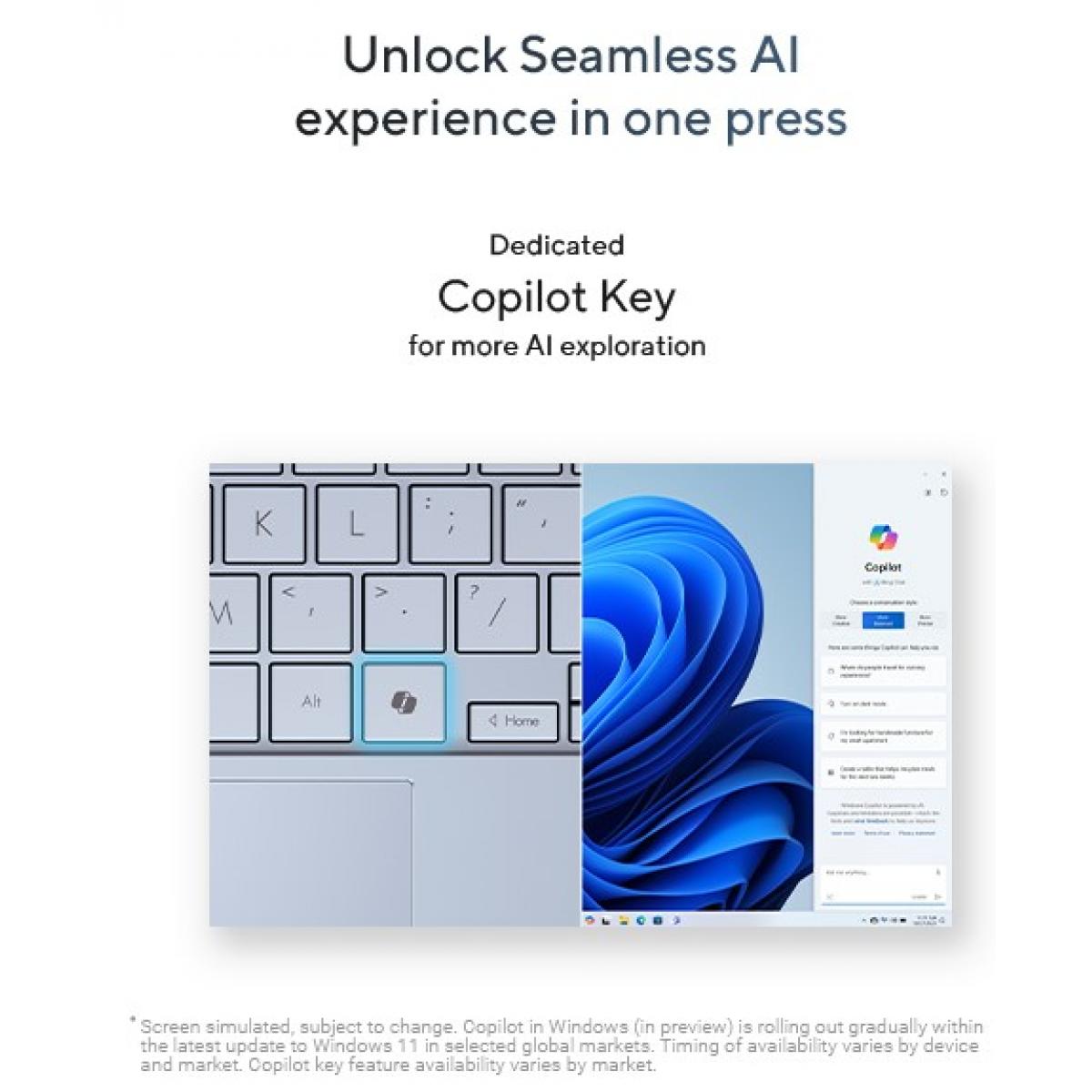 - Keyboard: Backlit Chiclet Keyboard 1-Zone RGB without Num-key, 1.7mm Key-travel, Precision touchpad, With Copilot key