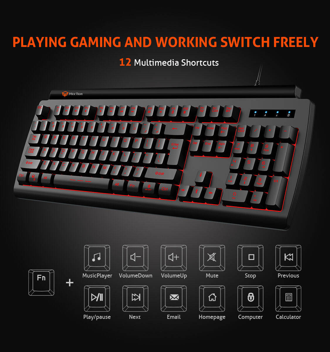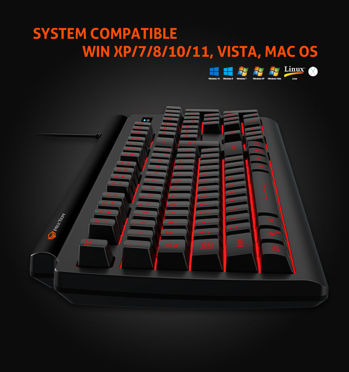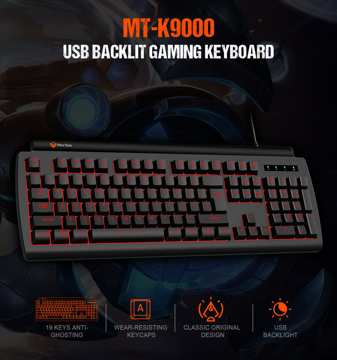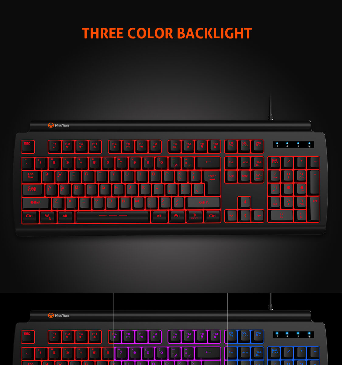 Meetion MT-K9000 Gaming Keyboard, Three Color Backlit, Classic original Design