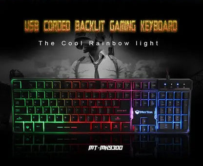 Meetion MT-K9300 Gaming Keyboard, Colorful Rainbow Backlit, USB Braided Cable