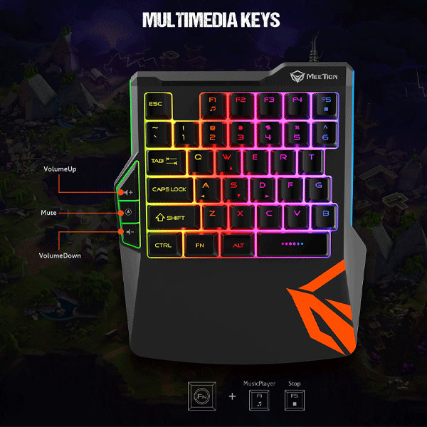 Meetion MT-KB015 Left One-Handed Gaming Keyboard, backlight, Classic original design